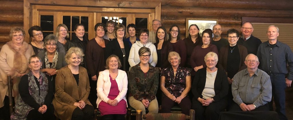 Pictured left to right (front row): Julie Giese, Bonnie O’Neil, Connie Gretschmann, Laura Eisenbraun, Lydia Berg, Mary Rea, Otto Harmon; (second row): Mary Livingston, Dorothy Espeseth, Patty Oxborough, Kathy Duclos, Stacie Scrimshaw, Shauna Carlson, Mary Jo Berven, Kristine Layne, Joanna Brenny, Jodi Harwig, Amanda Sample, Janesse McMillen, Rick Boyer, Marie Nelson, Daryl Kallevig, Steve Hammond; (back row): Sara Rian, Diana Rian and Roger Gale.