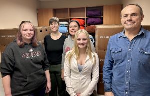Aitkin High School Future Farmers of America members helped pack food boxes for the February distribution. Pictured from left are Tryniti Shaffer, Allison Rian, Rachel Johnson, Audrianna Schneider and Rocco DiPaolo.